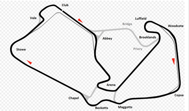 Los orígenes del circuito remiten a lo que fue una pista de aviones en la segunda guerra mundial, donde los spitfires, aviones de caza ingleses operaban. Como pista, en 1949 fue adoptada por el Royal Automobile Club como hogar del gran premio Inglés. El circuito básicamente mantuvo su rapidez original desde entonces y en 1950 se corrió el primer gran premio de fórmula uno, adjudicándoselo Guiseppe Farina en un Alfa Romeo. En 1951 sufrió varios cambios resaltando el cambio de la zona de pits a la recta entre Woodcote y Copse, de la recta de Farm donde originalmente los hospedaba. En 1971 el British Racing Drivers Club (BRDC) adquirió los 720 acres en donde reside el circuito y aprovecharon para otra vez modificar el área de pits y lo más importante, implementar una chicana en Woodcote, que generó grandes oportunidades de adelantamiento y avivar el espectáculo.