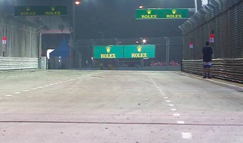 Como es de esperar en el circuito callejero con bardas resguardándole sin piedad a los errores, incidentes provocaron banderas amarillas y el ingreso del safety car. El más insólito fue el caso de un transeúnte que me dio la percepción estaba distraído del riesgo al que podía someter a pilotos y a su persona, tal vez, al querer acortar tramo utilizando como libramiento la pista prohibidísima al pie humano. En virtud de lo estricto y severo de las leyes en Singapur, debe estar ya en la cárcel.